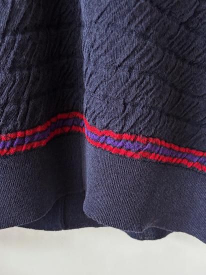 リブのところもよれ感を強調するため、通常のリブとは違う編み地で編んでいただきました。